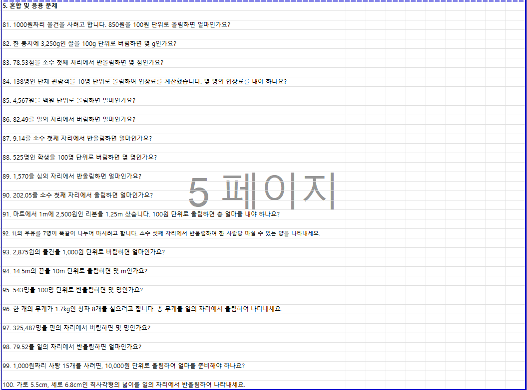(아래 그림 파일은 샘플들이며 엑셀파일 열어보시면 5장분량(100문제)으로 인쇄가능함)